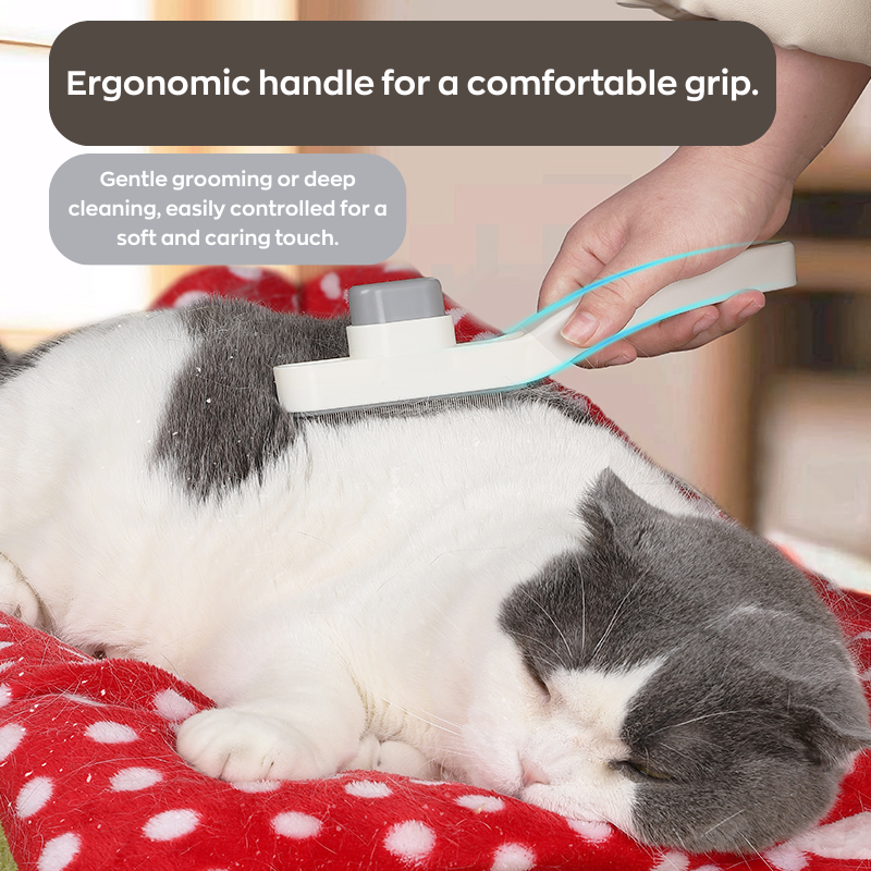 Enjoy effortless grooming with a soft ergonomic handle designed for comfort and control. Perfect for gentle pet hair removal or deep cleaning, giving your cat a relaxing, caring touch every time.