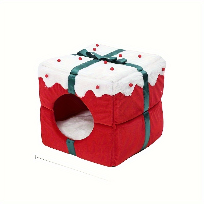 Gift Box Christmas Cat Litter – Enclosed Bed for Cats & Small Dogs