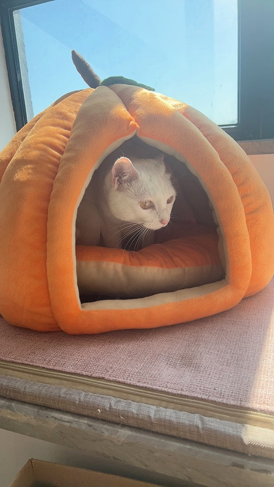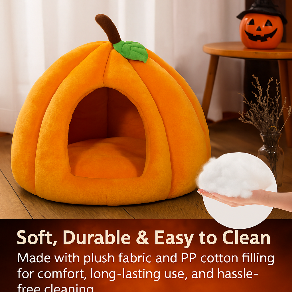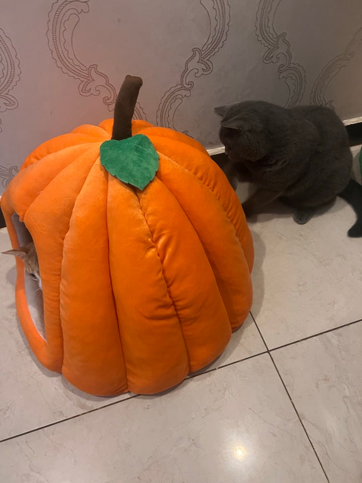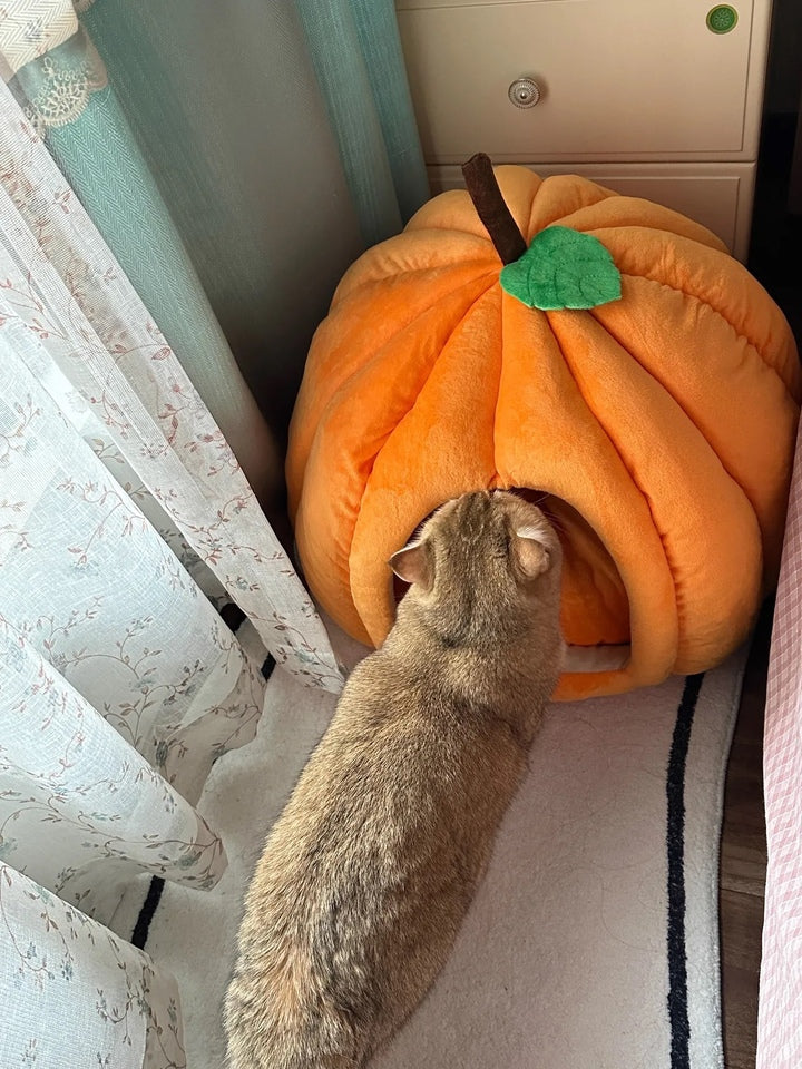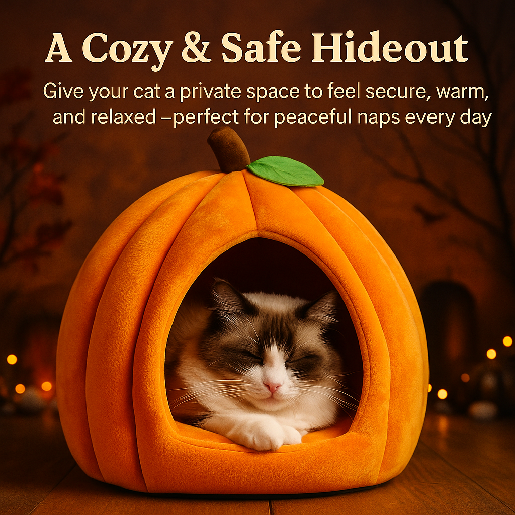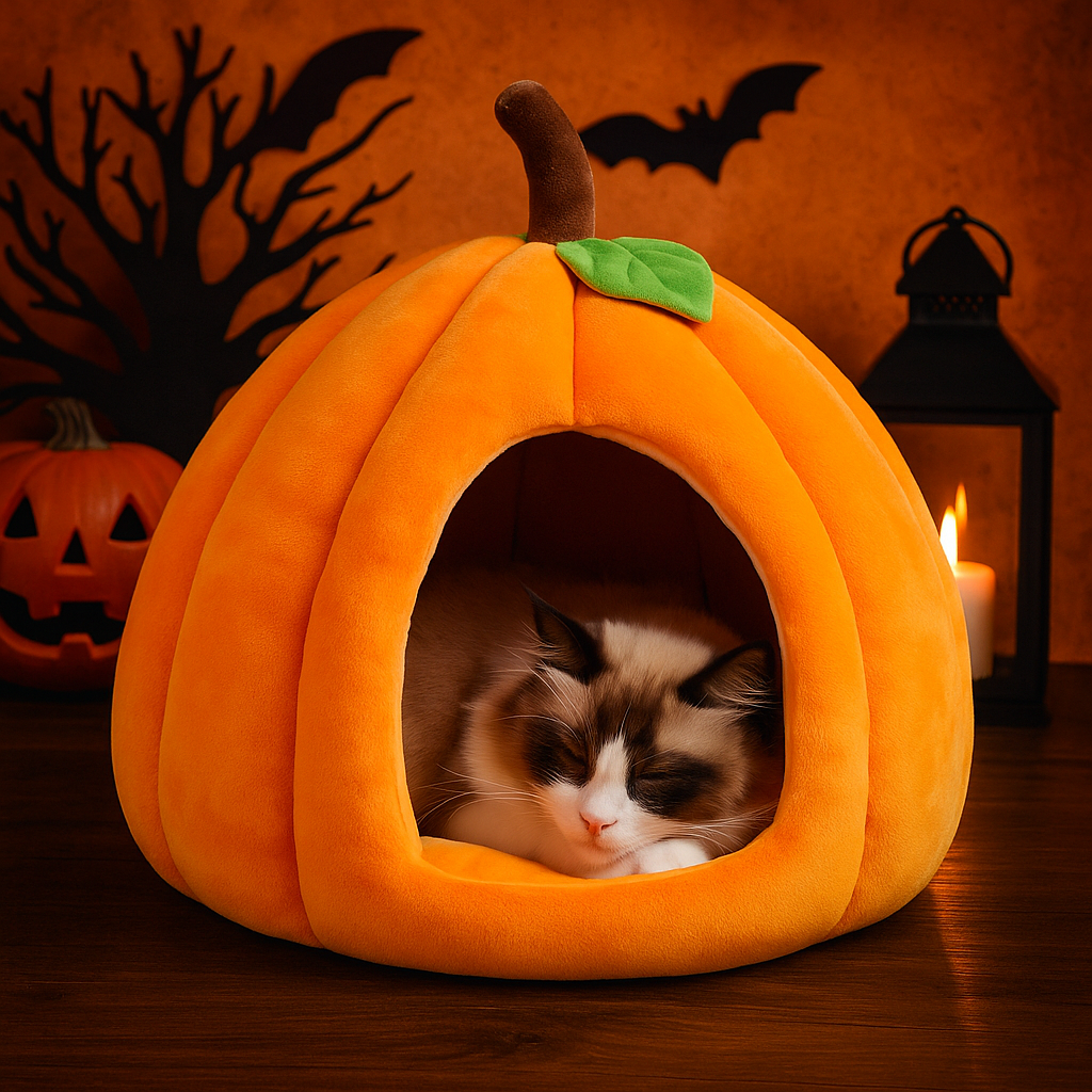 Spooky Pumpkin Cat Cave – Cozy Halloween Nest for Cats & Small Dogs