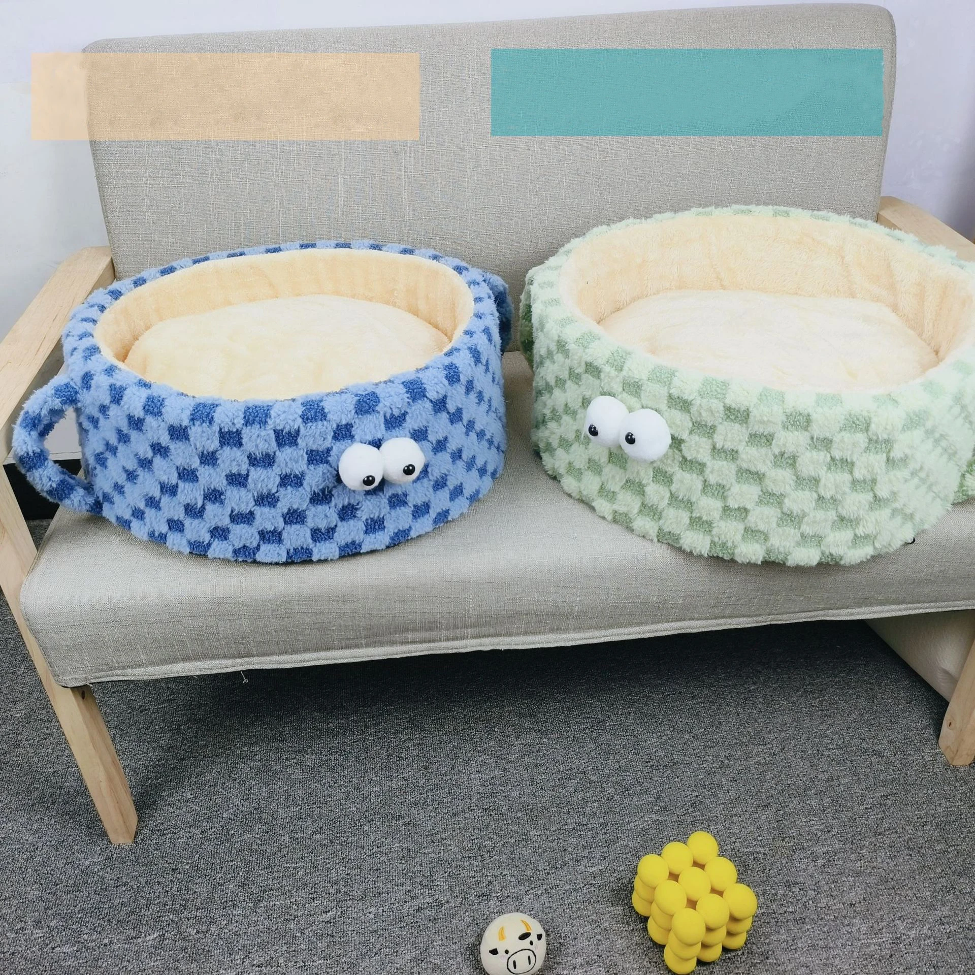 Round Eyelet Sponge Pet Kennel – Warm Bed for Cats & Small Dogs